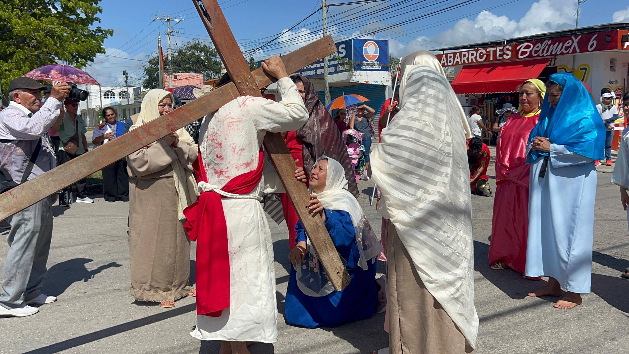 Las representaciones del viacrucis viviente reunieron a cientos de fieles en Chetumal durante el Viernes Santo, con recorridos en distintas parroquias que revivieron la Pasión de Cristo en calles de la ciudad