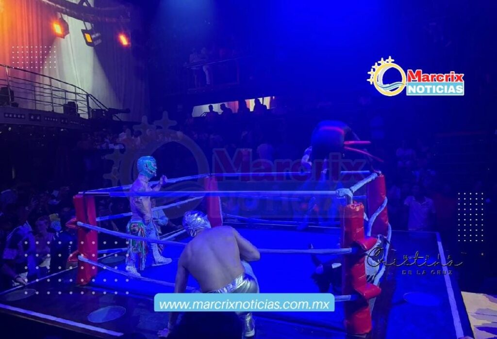 La lucha libre, otro de los grandes atractivos de la noche, hizo su entrada triunfal al escenario, fascinando al público con emocionantes combates y acrobacias que dejaron a todos al borde de la butaca.