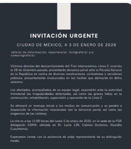 Los organizadores extendieron una invitación a representantes de medios de información para dar cobertura al acto, con la finalidad de documentar el proceso legal y las demandas de los afectados por el descarrilamiento.
