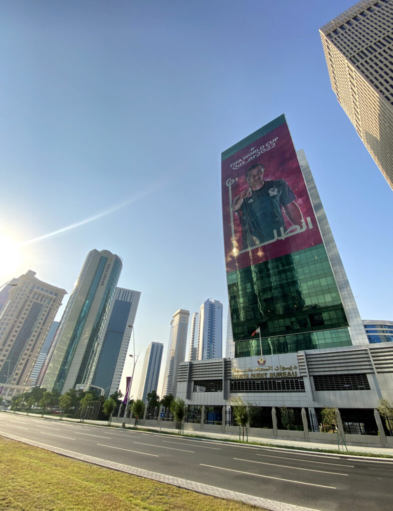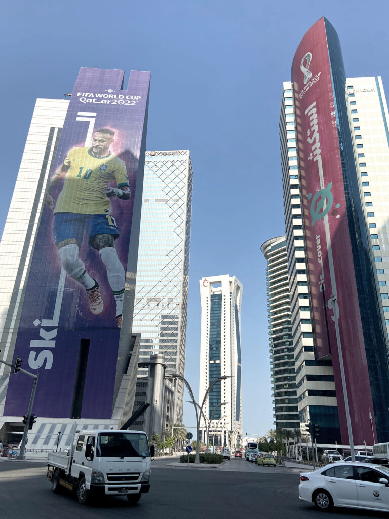 Así es la ciudad de Doha, una que se rinde con los grande rascacielos y que vive el Mundial de una forma distinta pese a que el futbol no es el deporte más practicado. Las estrellas del futbol mundial ya están en Qatar, al menos retratadas en los edificios más importantes de la ciudad.