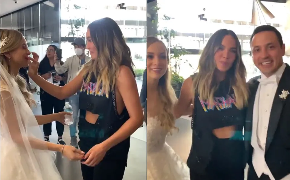 Todo parece indicar que la pareja corrió con suerte pues se encontraba en el hotel en el que Belinda se encontraba hospedada. Se puede ver como la cantante va caminando con todo su equipo de producción cuando nota a la novia con su vestido blanco, ambas reaccionaron emocionadas.