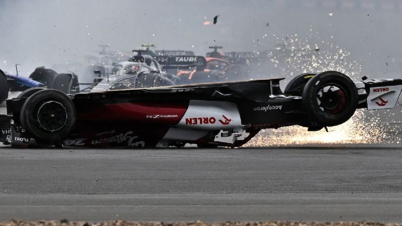 Apenas comenzaba el evento cuando en la transmisión de televisión se pudo apreciar el fuerte choque en el que también estuvieron involucrados George Russell, Yuki Tsunoda, Alexander Albon y Esteban Ocon, aunque el que se llevó la peor parte fue el conductor chino.