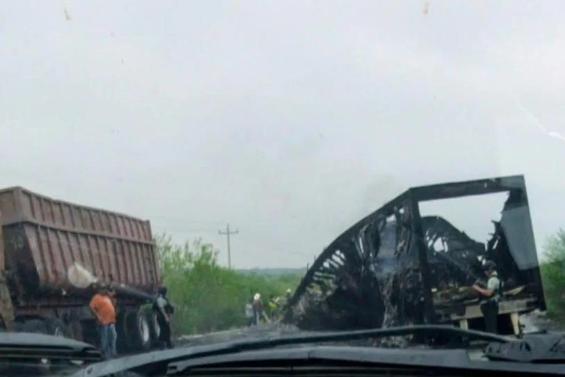 En estos puntos, grupos armados realizaron bloqueos con vehículos robados, incendiaron unidades de carga —incluidos tráileres— y esparcieron ponchallantas para impedir la movilidad. Uno de los incidentes más relevantes ocurrió sobre la carretera a la Ribereña, a la altura del poblado Los Guerra, en el municipio de Miguel Alemán, donde se reportó un cierre total de la vialidad.