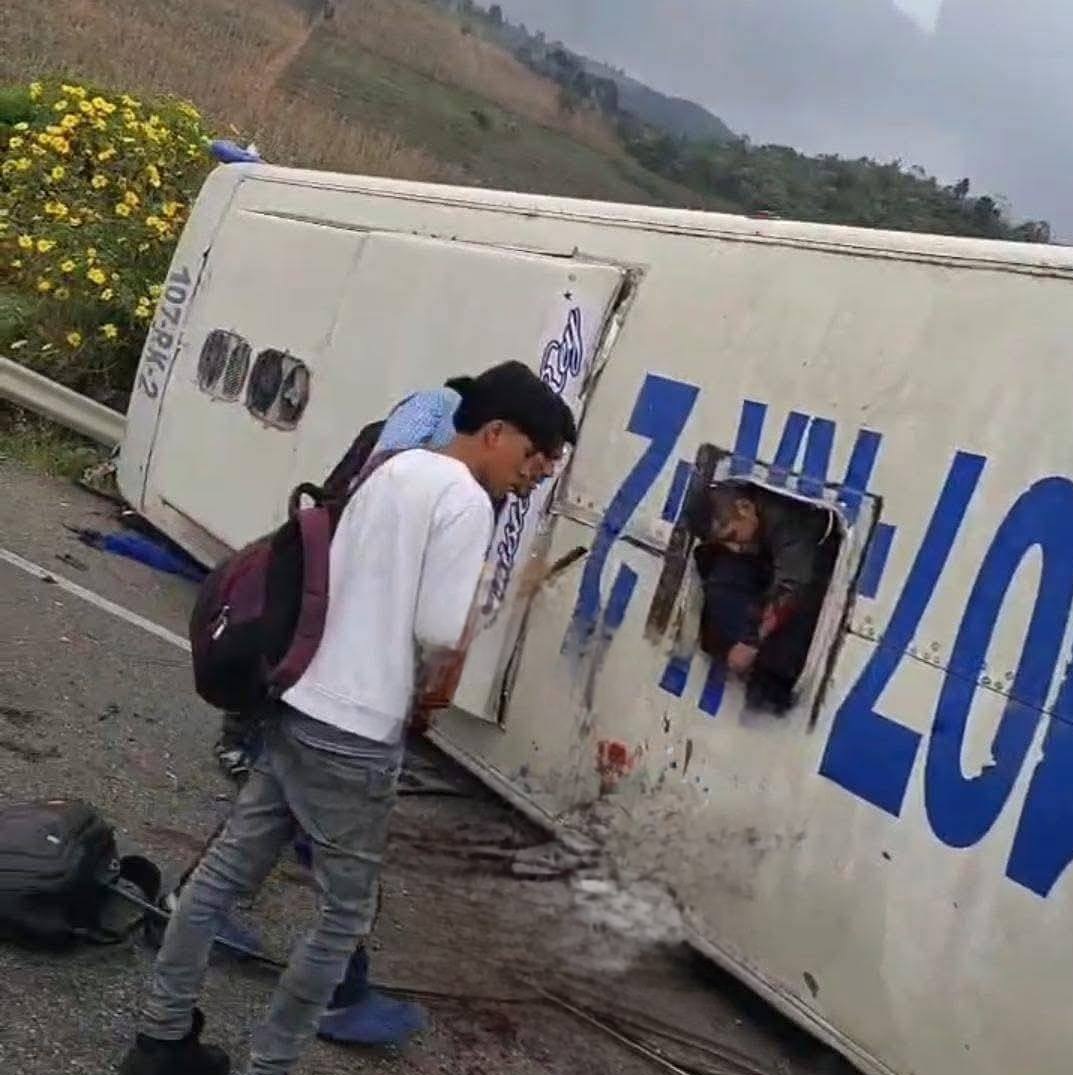 De acuerdo con los primeros reportes, el autobús perdió el control por causas aún desconocidas, lo que provocó que terminara volcado a un costado de la vía.