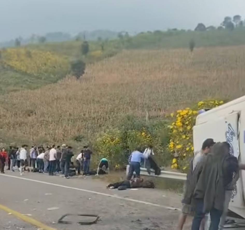 un camión de pasajeros que trasladaba a un grupo de jornaleros volcó de manera aparatosa; el saldo de una persona muerta y más de 20 heridos.un camión de pasajeros que trasladaba a un grupo de jornaleros volcó de manera aparatosa; el saldo de una persona muerta y más de 20 heridos.