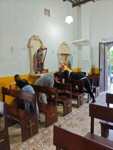Durante la jornada, los voluntarios realizaron trabajos de pintura general en la capilla, los muros perimetrales y las bardas, además de labores de limpieza profunda en el interior del templo. También se renovó la herrería, se ordenó el mobiliario litúrgico y se dio mantenimiento al presbiterio, con el objetivo de devolverle dignidad y funcionalidad al espacio.