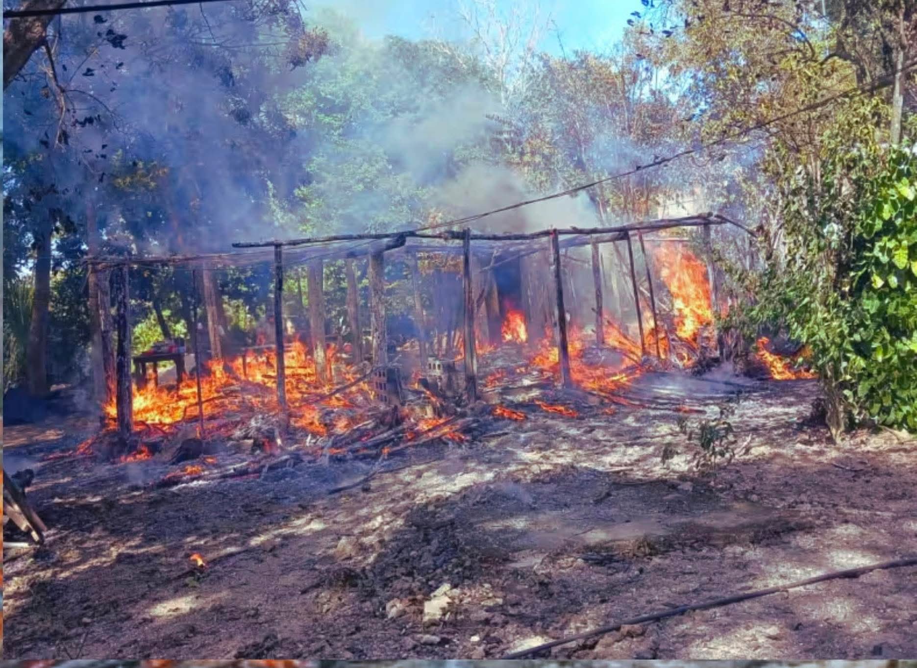 Las llamas consumieron por completo una vivienda rústica cerca del crucero Polyuc – Chunhuhub; la cercanía de una gasolinera encendió las alertas de emergencia.