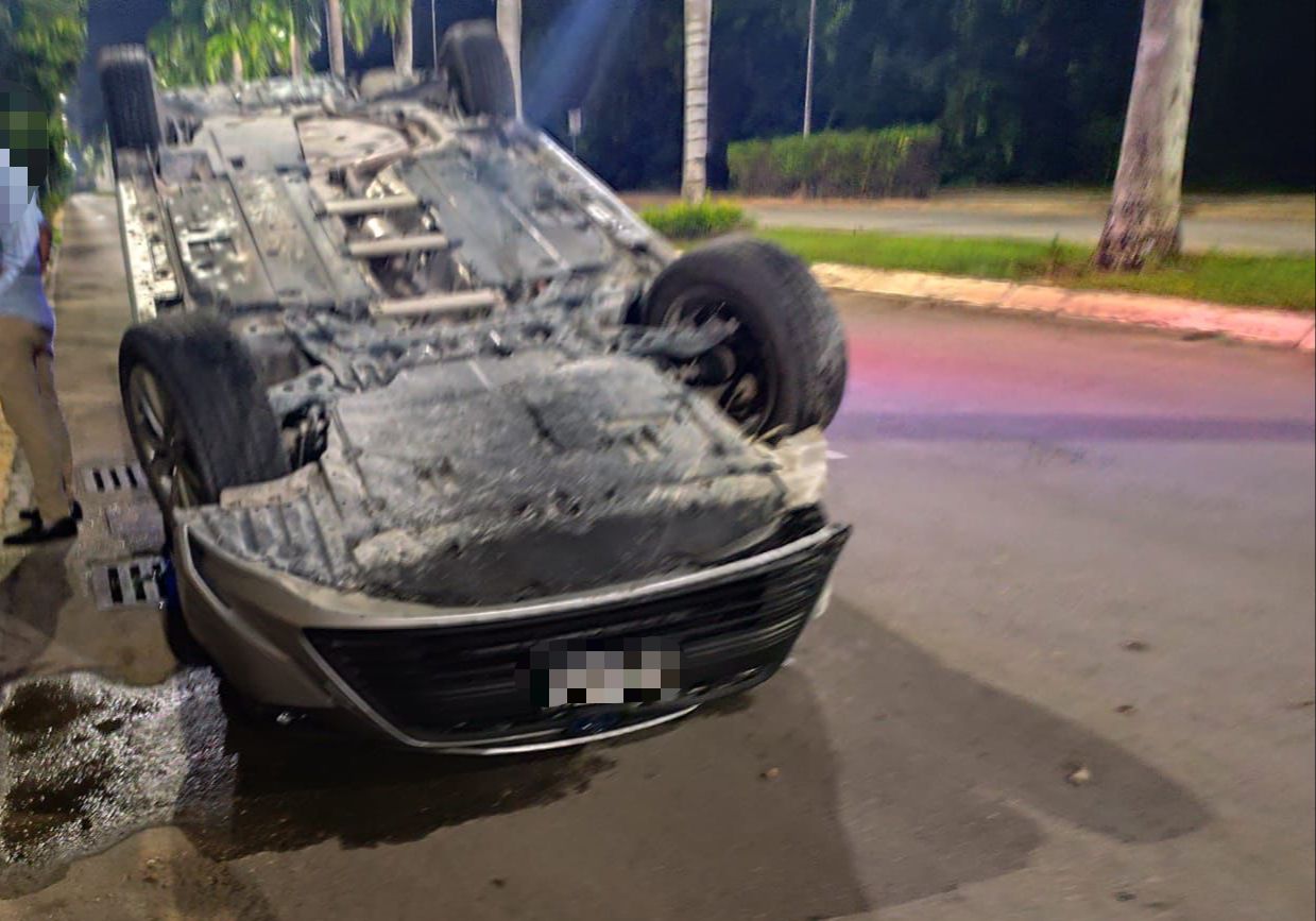 Exceso de velocidad provoca volcadura en Cancún