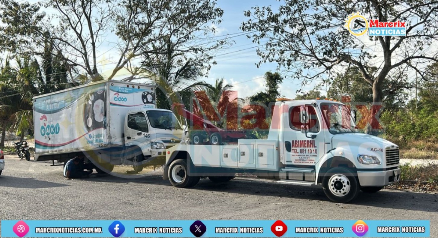 Cancún (Marcrix Noticias).- Un accidente vial ocurrió esta mañana sobre el Arco Vial, en la región 237, cuando un camión perdió el control y terminó volcado en el camellón lateral tras impactar con un vehículo quemado. Afortunadamente, el conductor del camión resultó ileso, y no se registraron personas lesionadas.