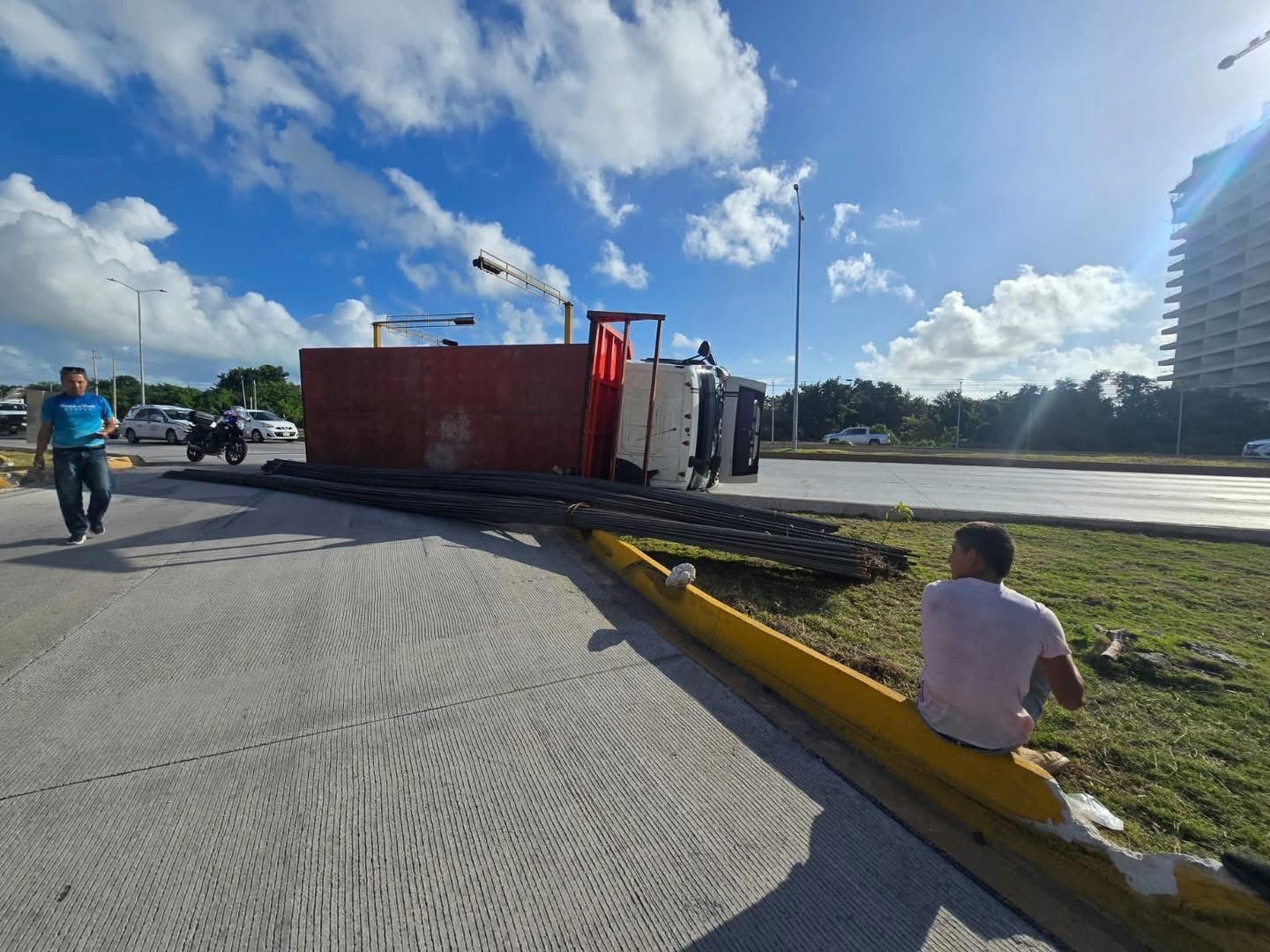 Volcadura en el Boulevard Colosio, a la altura de Residencial Campestre, en dirección Cancún-Playa del Carmen, dejó una persona lesionada en valoración.