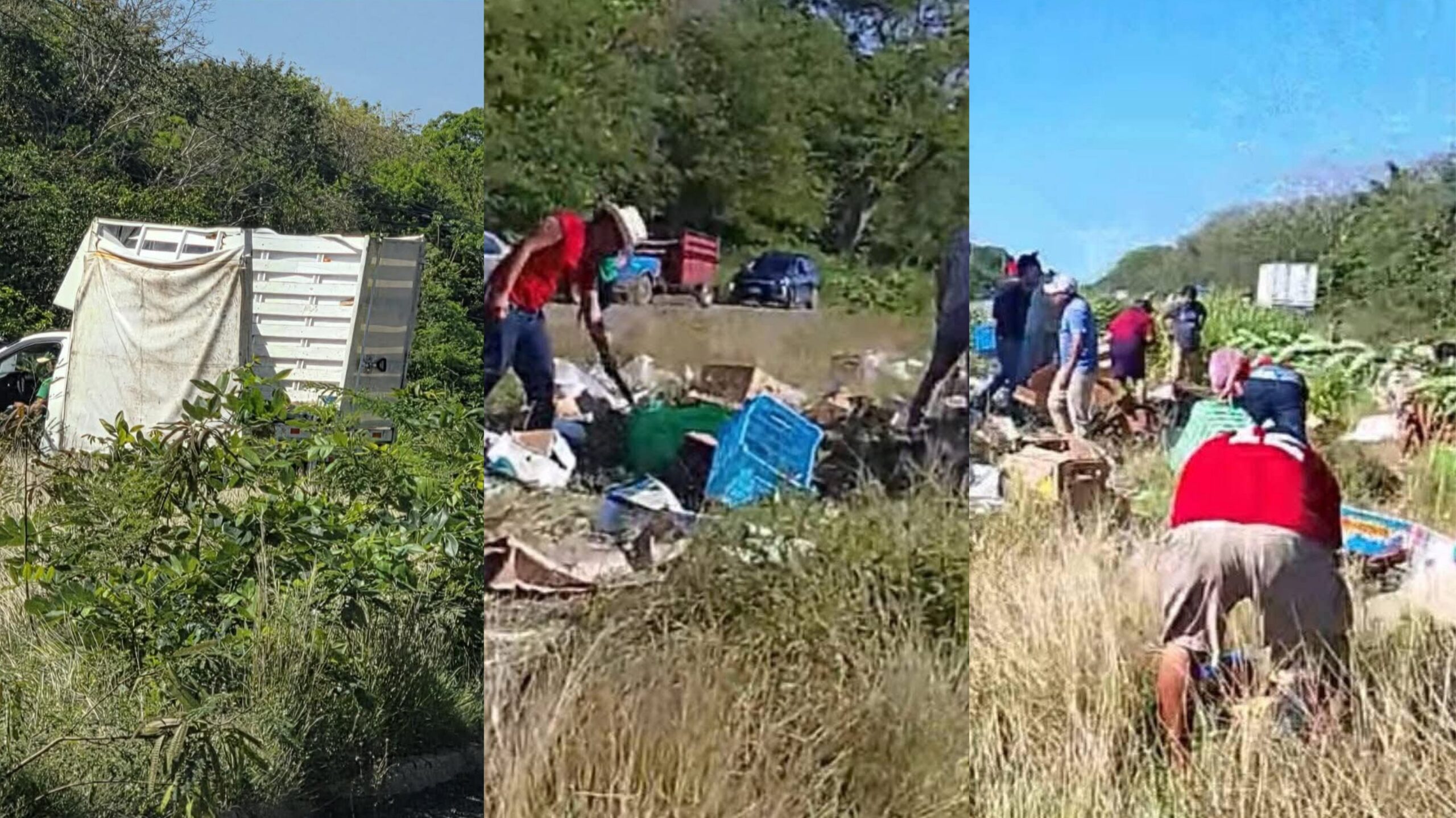 En cuestión de minutos, la mercancía fue sustraída casi en su totalidad, mientras el vehículo permanecía siniestrado fuera de la vía.