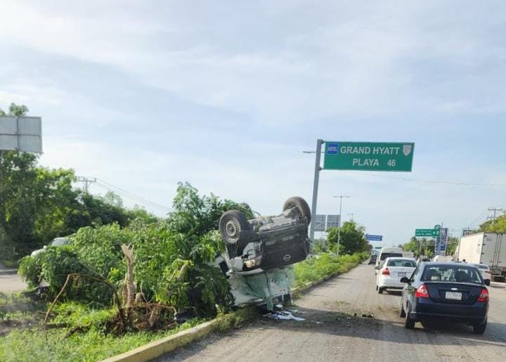 Playa del Carmen(Marcrix Noticias).- Un aparatoso accidente se registró en la carretera Cancún – Playa del Carmen la mañana de este miércoles 9 de octubre.