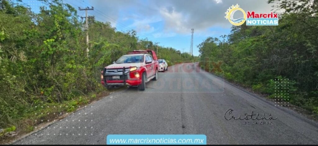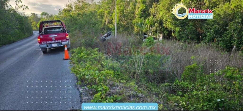 Puerto Morelos (Marcrix Noticias)-Un accidente vehicular por volcadura, en la Ruta de Cenotes, carriles de oeste a este, 250 metros antes del Cenote Verde Lucero.