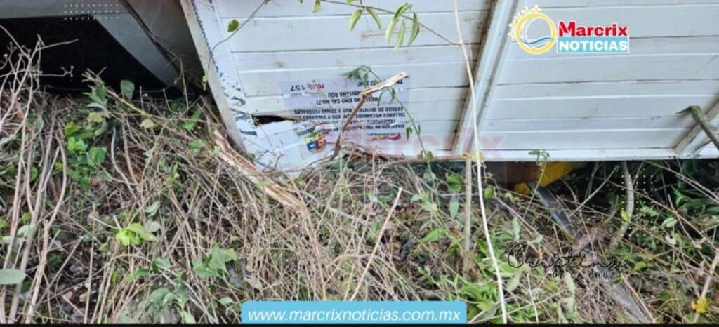 La camioneta volcada es de marca Nissan, estaquitas, modelo 2022, cabina color gris con caja color blanco, placas de circulación SZ-3361-N, del estado de Quintana Roo, propiedad del C. Luis Antonio Barrera Burgos, de 43 años de edad, originario de Chetumal, Quintana Roo, con domicilio en Puerto morelos, oficio empresario Transportista,