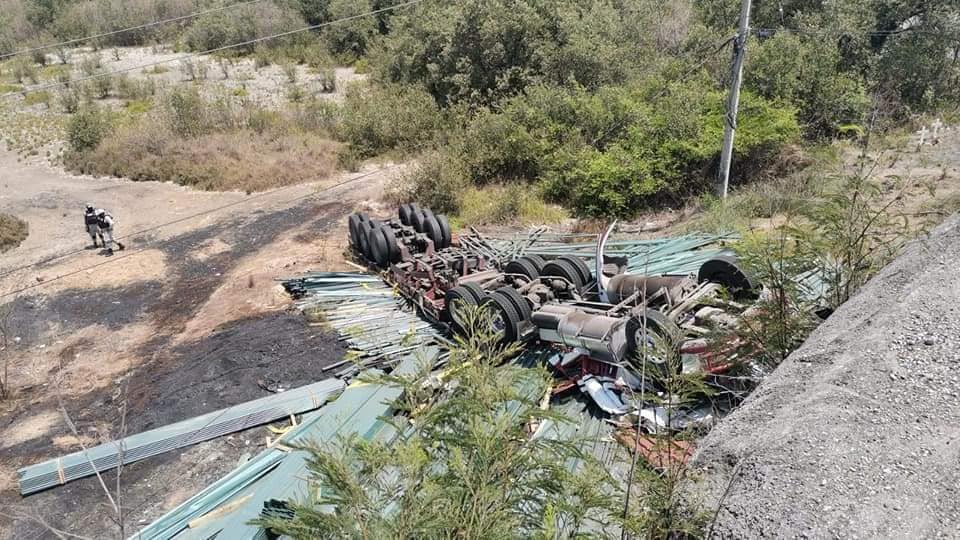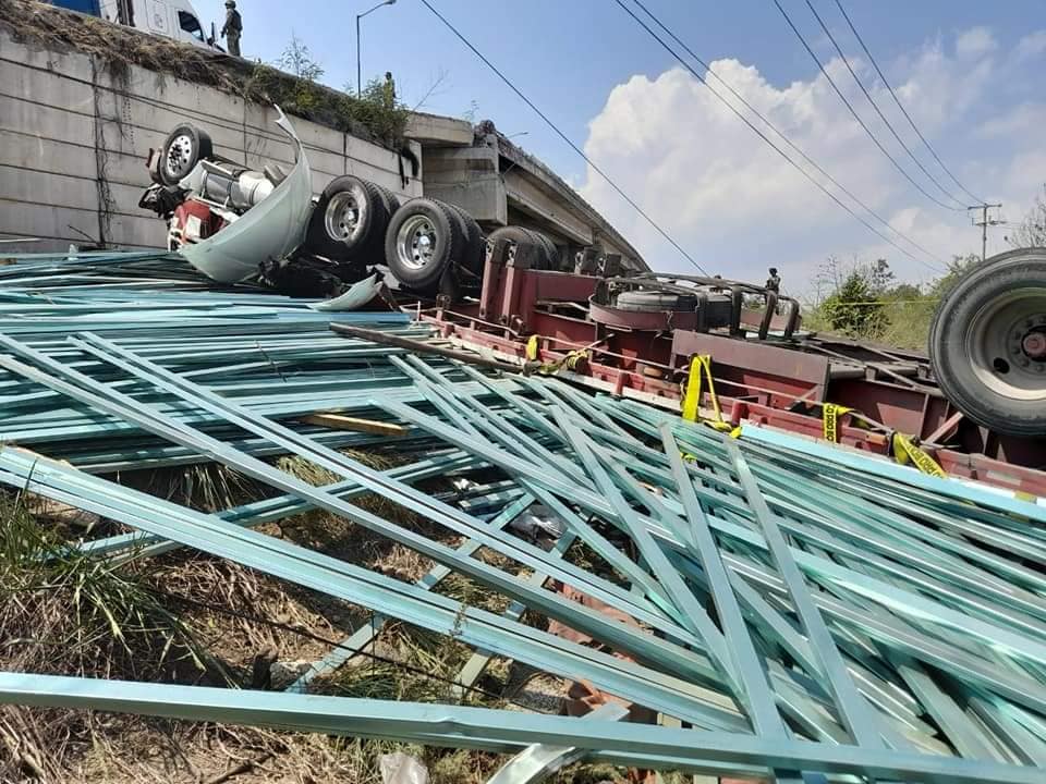 El camión Kenworth color guinda que transportaba las estructuras alargadas de aluminio, al incorporarse a la peligrosa curva, por el peso de la carga “jalo” el tráiler, y el chófer nada pudo hacer para evitar que la unidad motriz se precipitara al vacío en una altura aproximada de 15 metros.