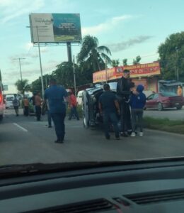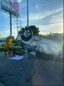 Puerto Morelos (Marcrix, Noticias).- La mañana de este domingo se registró un fuerte accidente en la carretera federal 307, en el tramo Puerto Morelos-Playa del Carmen, donde dos vehículos quedaron volcados tras una colisión.