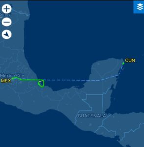 La aeronave había despegado del Aeropuerto Internacional Benito Juárez de la Ciudad de México a las 7:16 horas y tenía previsto arribar a Cancún a las 9:56 de la mañana.