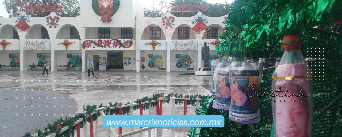 Esta mañana personal del Ayuntamiento pusieron de nueva cuenta los adornos navideños con las fichas policiacas de búsqueda de Francisca Marineer y de los 70 desaparecidos en Quintana Roo, las cuales fueron retiradas el mismo día que fueron instaladas por las madres de las desaparecidas.