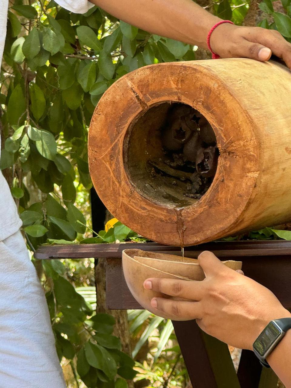 La abeja melipona, nativa de la región y sin aguijón, produce alrededor de 1.5 litros de miel al año por panal.