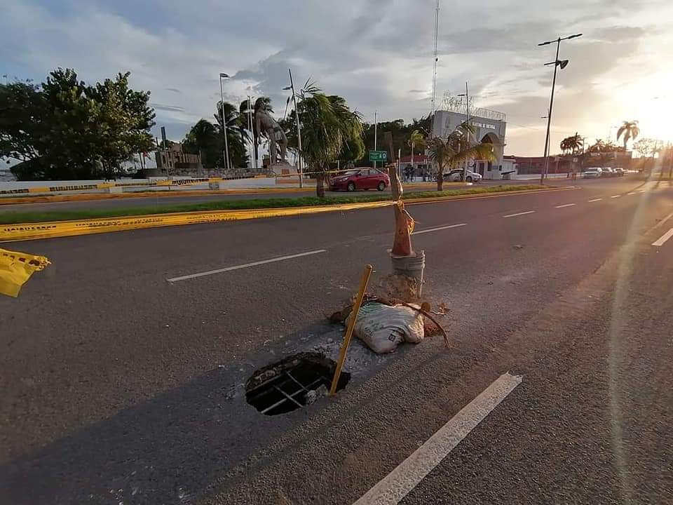 Y es que frente al Palacio de Gobierno del Estado, el Bulevar Bahía de Chetumal sufrió su primer desfonde, el cual es de gran tamaño.