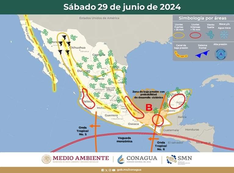 Cancún(Marcrix Noticias).- A partir del próximo día viernes 28 y durante el día sábado 29 de junio, se prevé la afectación de una Zona de Baja Presión con potencial para desarrollo ciclónico sobre los municipios del estado de Quintana Roo.